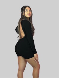 The “Jay suite” Jump suit is a fully body suit with a full open back